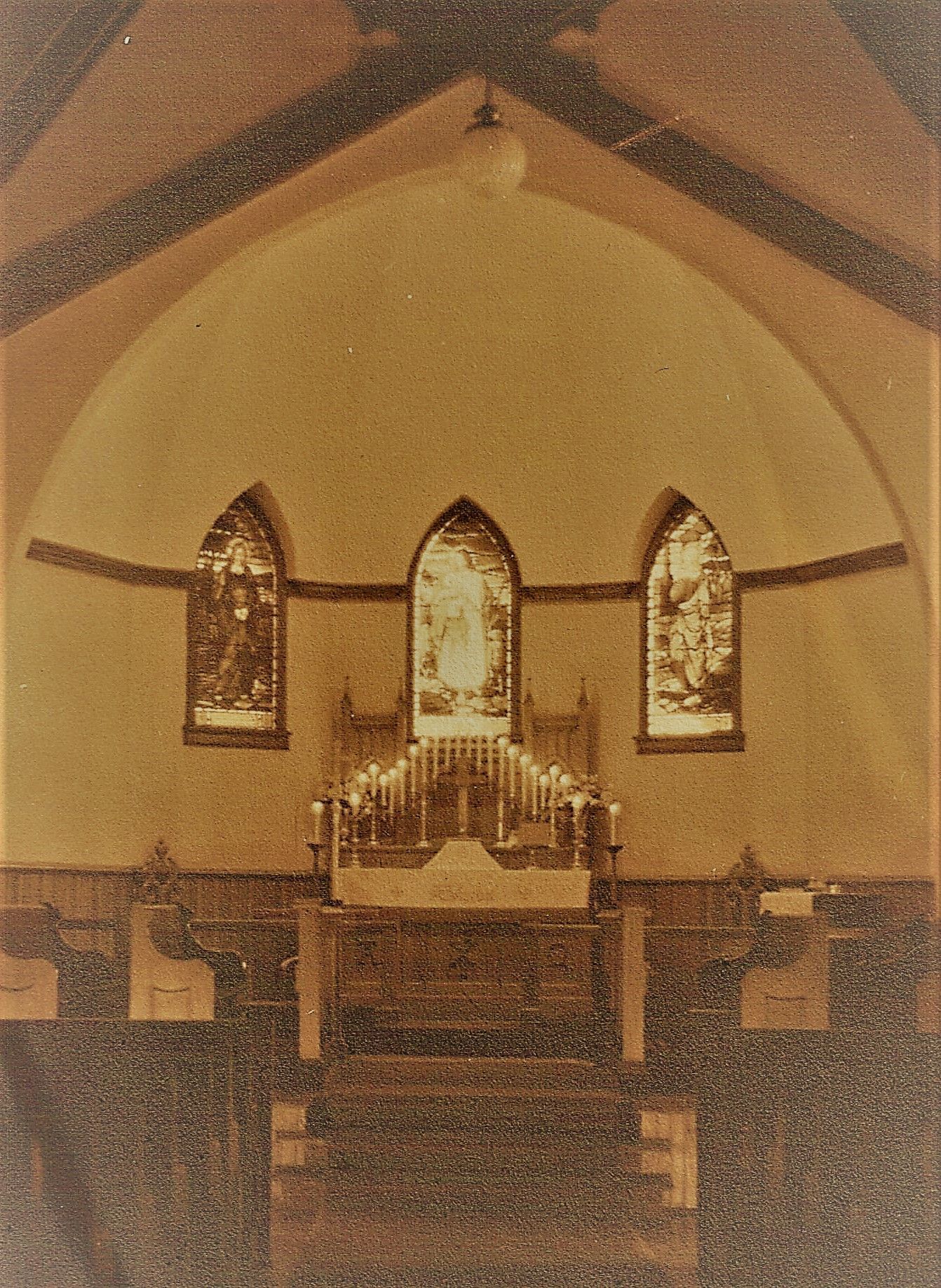 The lights were given by Tubize Silk Co., and in 1926, an Apse holding the altar was built and the memorial stained-glass windows were placed along with a pipe organ given by Mary Eppes in honor of her sister.